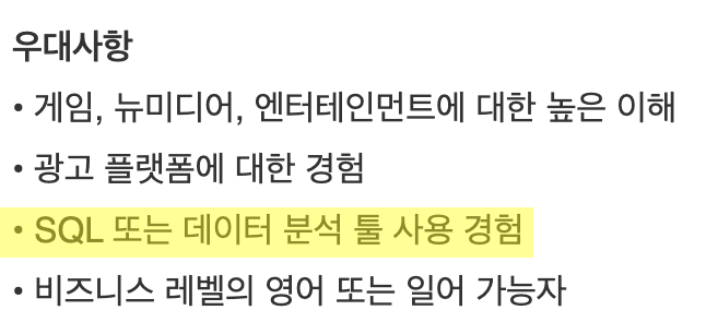 이렇게 다양한 PM을 채용하는데, 우대조건에 공통점이 있었다. 바로 SQL(Structured Query Language)로 데이터를 다룰 수 있는 사람을 먼저 찾는다는 것.