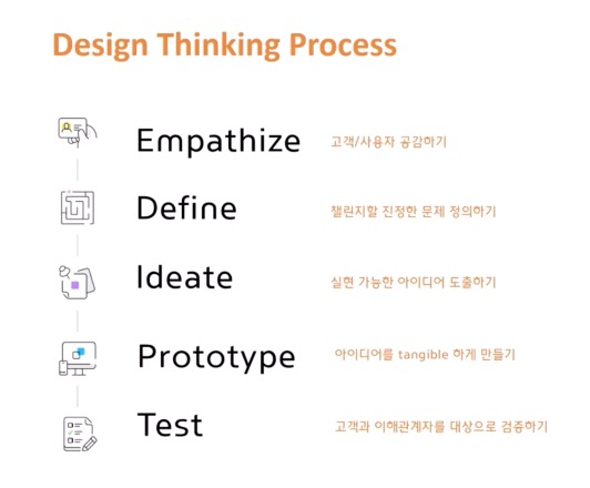 디자인 씽킹 프로세스는 크게 5단계로 나뉜다.